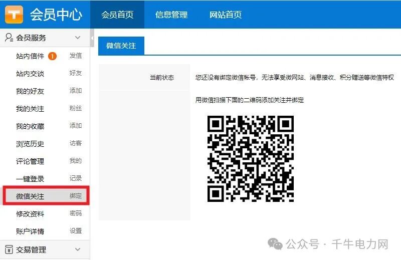 4、关注公众号绑定微信,及时获取【官网】各项服务。