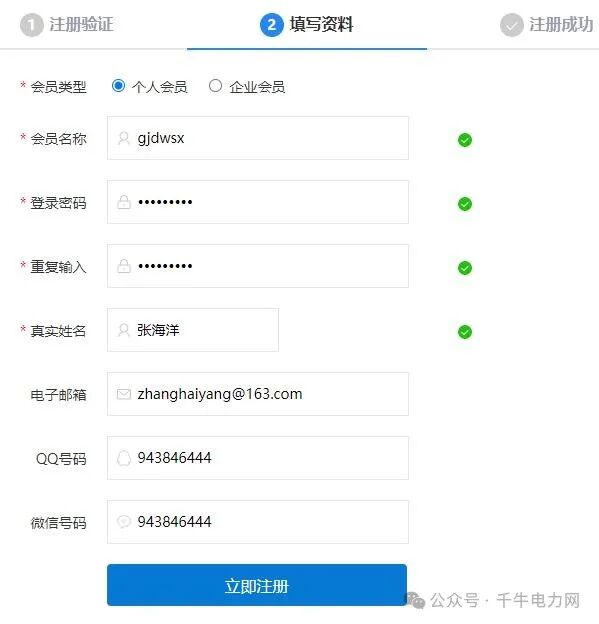 填完完成以上信息,且系统检测无误后,点击【立即注册】即可注册完成。
