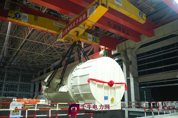 9月25日23时46分,商洛发电二期2×660MW工程3号机组发电机定子顺利吊装就位。