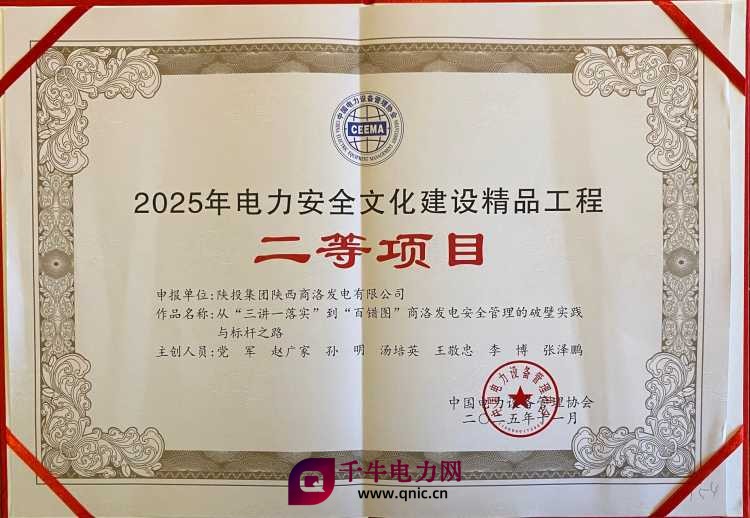 近日,中国电力设备管理协会公布2025年度电力安全文化建设精品工程评选结果,商洛发电申报的《从“三讲一落实”到“百错图”商洛发电安全管理的破壁实践与标杆之路》,从全国242家企业中脱颖而出,斩获二等项目殊荣。