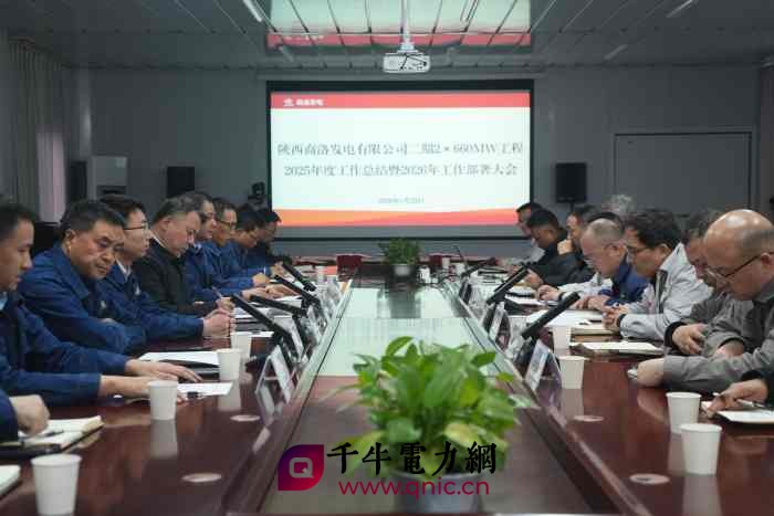 1月29日,商洛发电召开二期工程2025年度工作总结会暨2026年工作部署会,总结过去一年工程建设成效,表彰先进典型,分析当前形势,并就2026年决胜双机双投目标进行再动员、再部署。公司党委书记、执行董事党军,党委副书记、总经理赵广家等领导班子成员,二期项目部管理人员及监理、总包、各参建单位项目经理、受表彰先进参会,会议由公司党委委员、副总经理林日新主持。